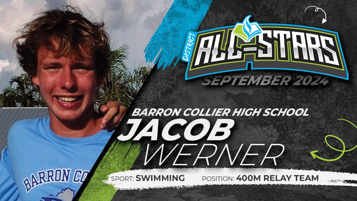 Jacob Werner is a senior captain on the Barron Collier boys swimming team. After a strong preseason, he is posting some impressive competitive times. In a recent meet against Bishop Verot, Jacob swam 52.60 in the 100m freestyle and recorded a 100m backstroke time of 59.56. At last year’s State Championship, Jacob helped the 400m freestyle team finish 4th overall. He shows strength in the classroom as well with a weighted 5.06 GPA entering his senior year. #CCPSSuccess