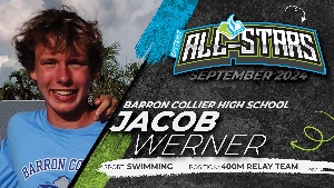 Congrats to Coby for being named a District All Star by Collier County Public Schools. Below is the write up and link to their Facebook Post: LINK Jacob Werner is a senior captain on the Barron Collier boys swimming team. After a strong preseason, he is posting some impressive competitive times. In a recent meet against Bishop Verot, Jacob swam 52.60 in the 100m freestyle and recorded a 100m backstroke time of 59.56. At last year’s State Championship, Jacob helped the 400m freestyle team finish 4th overall. He shows strength...